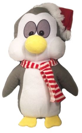 A christmas themed soft toy penguin.